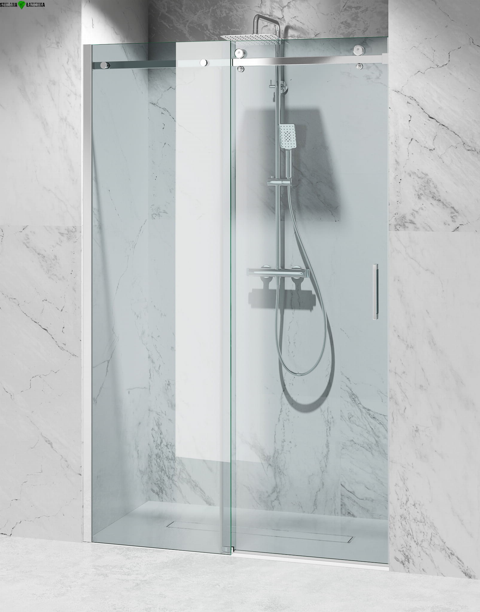 DRZWI PRYSZNICOWE 135 cm, PRZESUWNE SREBRNY POŁYSK D20