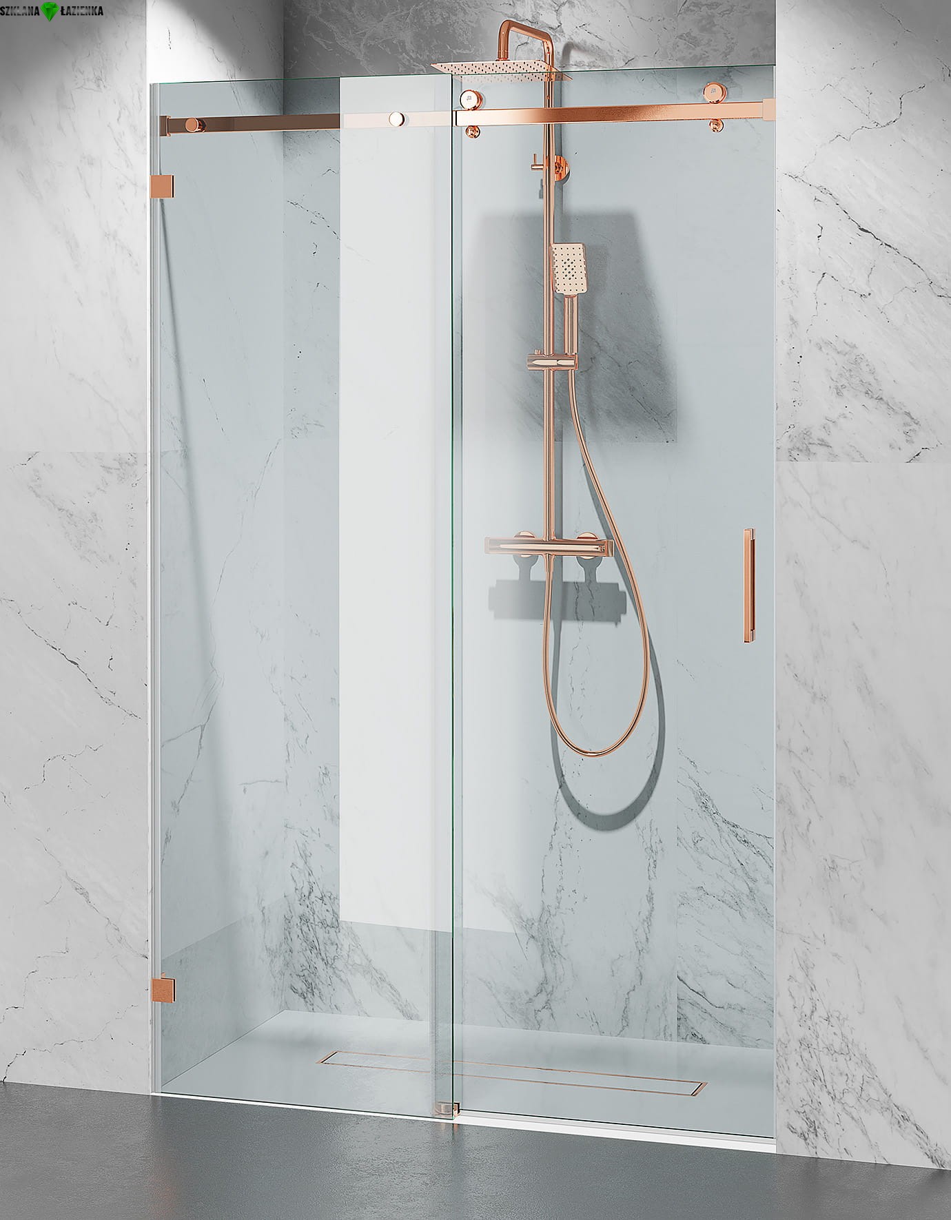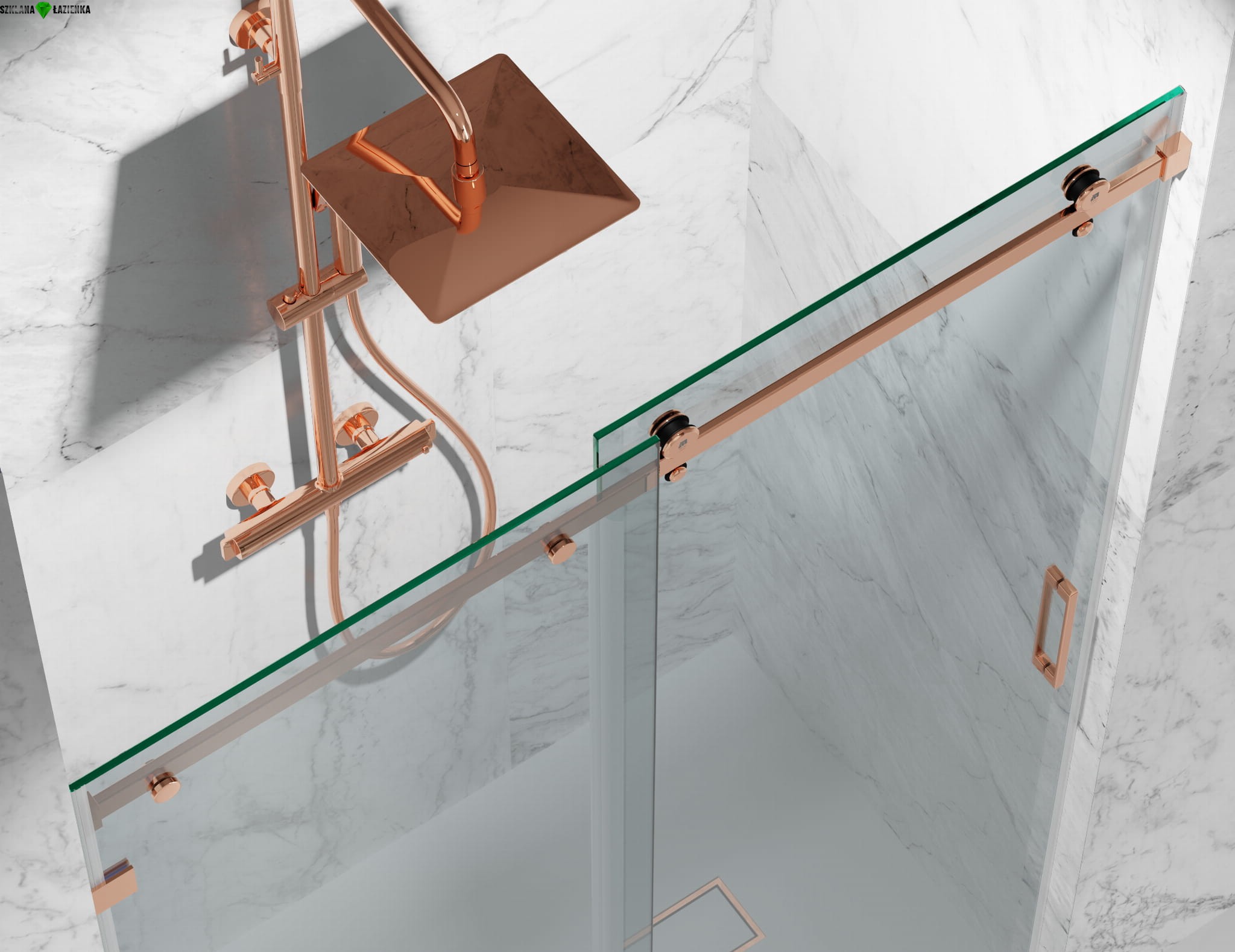 Drzwi Prysznicowe Przesuwne Bezprofilowe BD20P2 Różowe Złoto