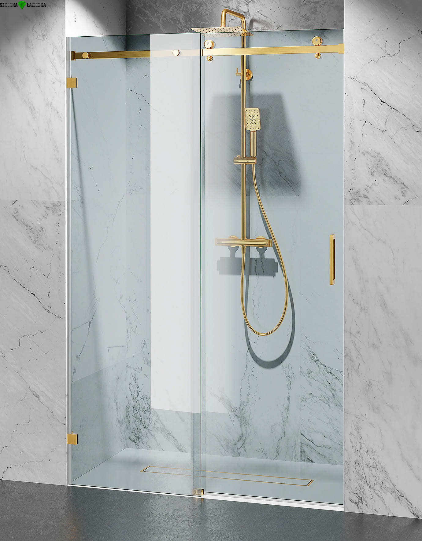Drzwi Prysznicowe Przesuwne Bezprofilowe BD20P2 Złoty Szczotkowany
