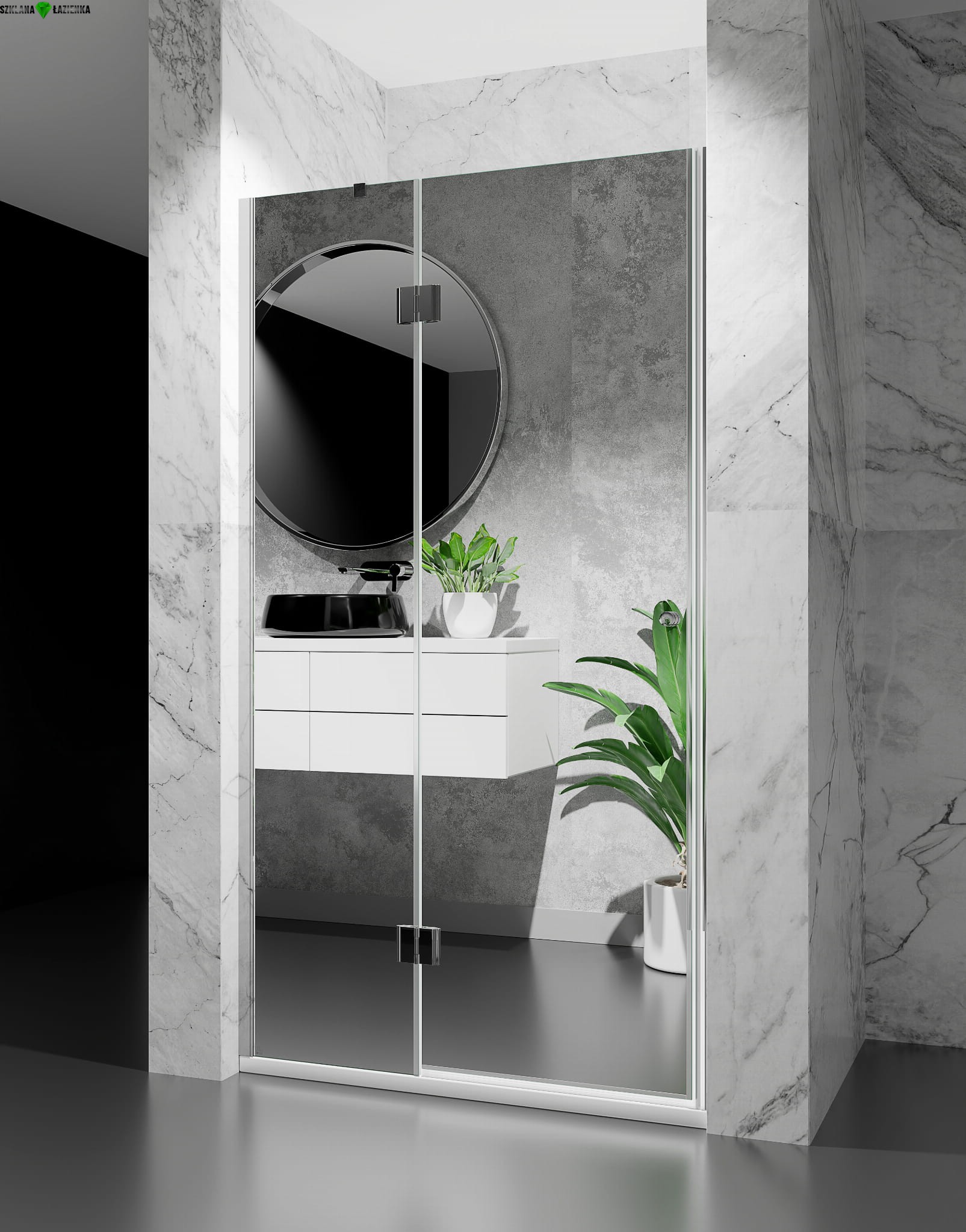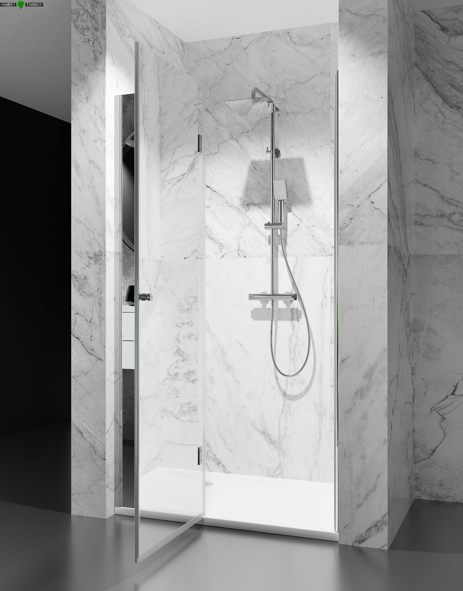Drzwi prysznicowe uchylne Liniger DV8000D Efekt Lustra Chrom Połysk