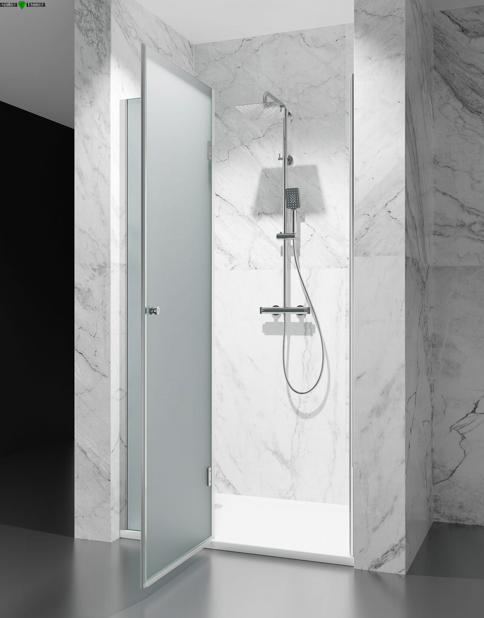Drzwi prysznicowe uchylne Liniger DV8000D Mrożone Chrom Połysk