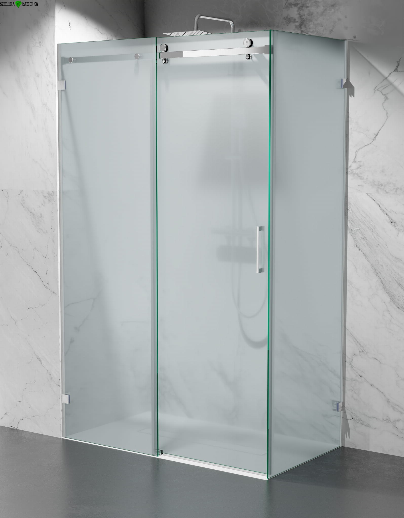 Kabina Prysznicowa Przesuwna Bezprofilowa C20P2 Srebrny Mat Mrożona