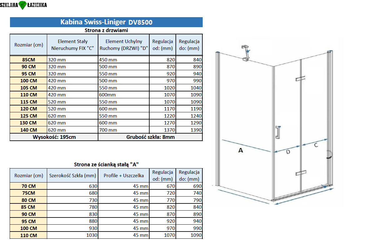 GRUBOŚĆ SZKŁA: 8mm