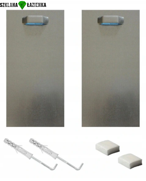 W komplecie znajdują się stalowe zawieszki samoprzylepne z mocnym klejem przeznaczonym do szkła oraz dolne dystanse. Zapraszamy na sprawdzenie naszych innych ofert gdzie wyszukają Państwo różne rozmiary i modele, w tym lustra podświetlane LED.