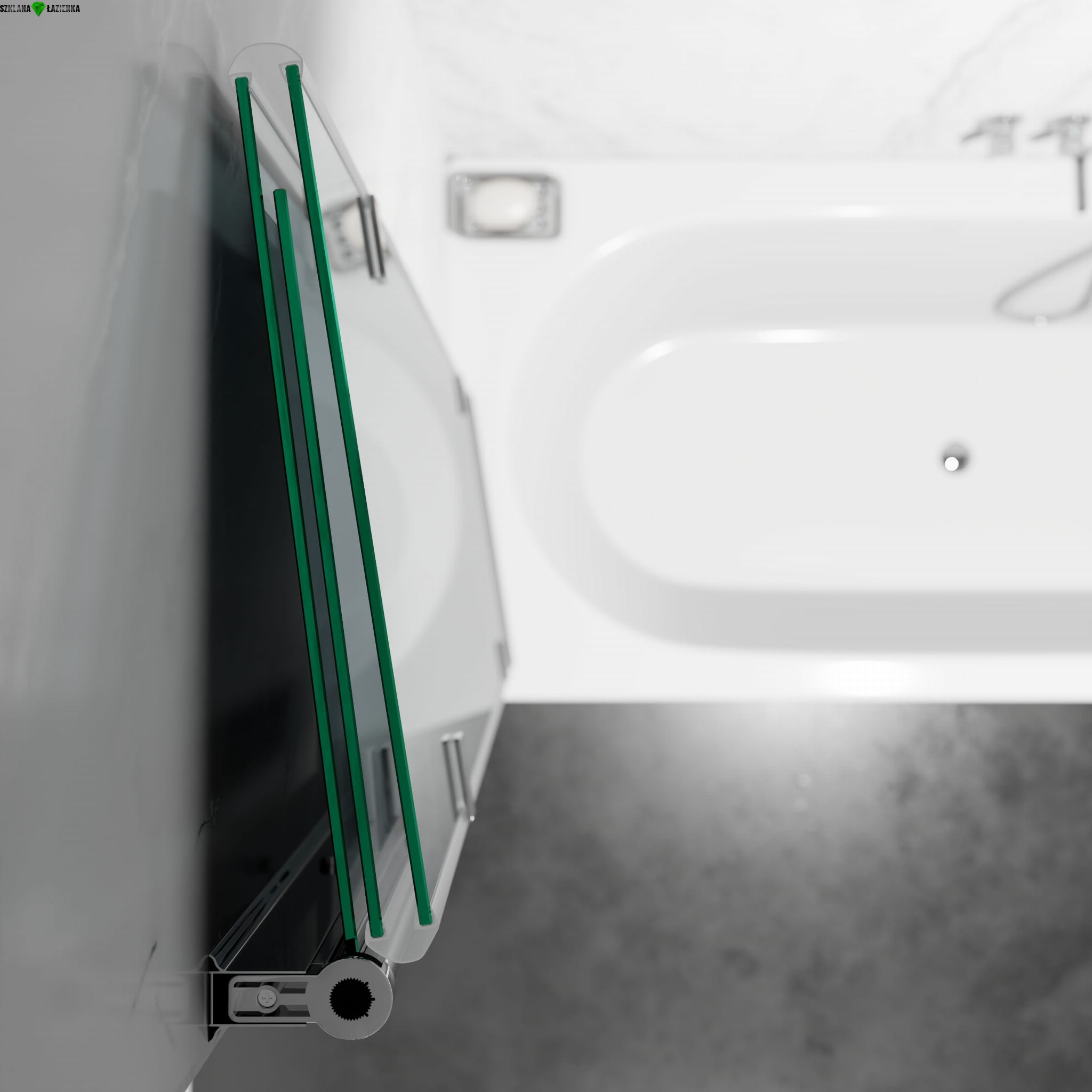 Szklany parawan z przeznaczeniem montażu na wannie z listwą ścienną i rolką obrotową. Wieloelementowa, składana konstrukcja, pozwala na szybkie złożenie parawanu po zakończonej kąpieli. Odzyskujemy dzięki temu przestrzeń na swobodne poruszanie się po łazience. Jest to niezwykle ważne szczególnie przy małych powierzchniach.