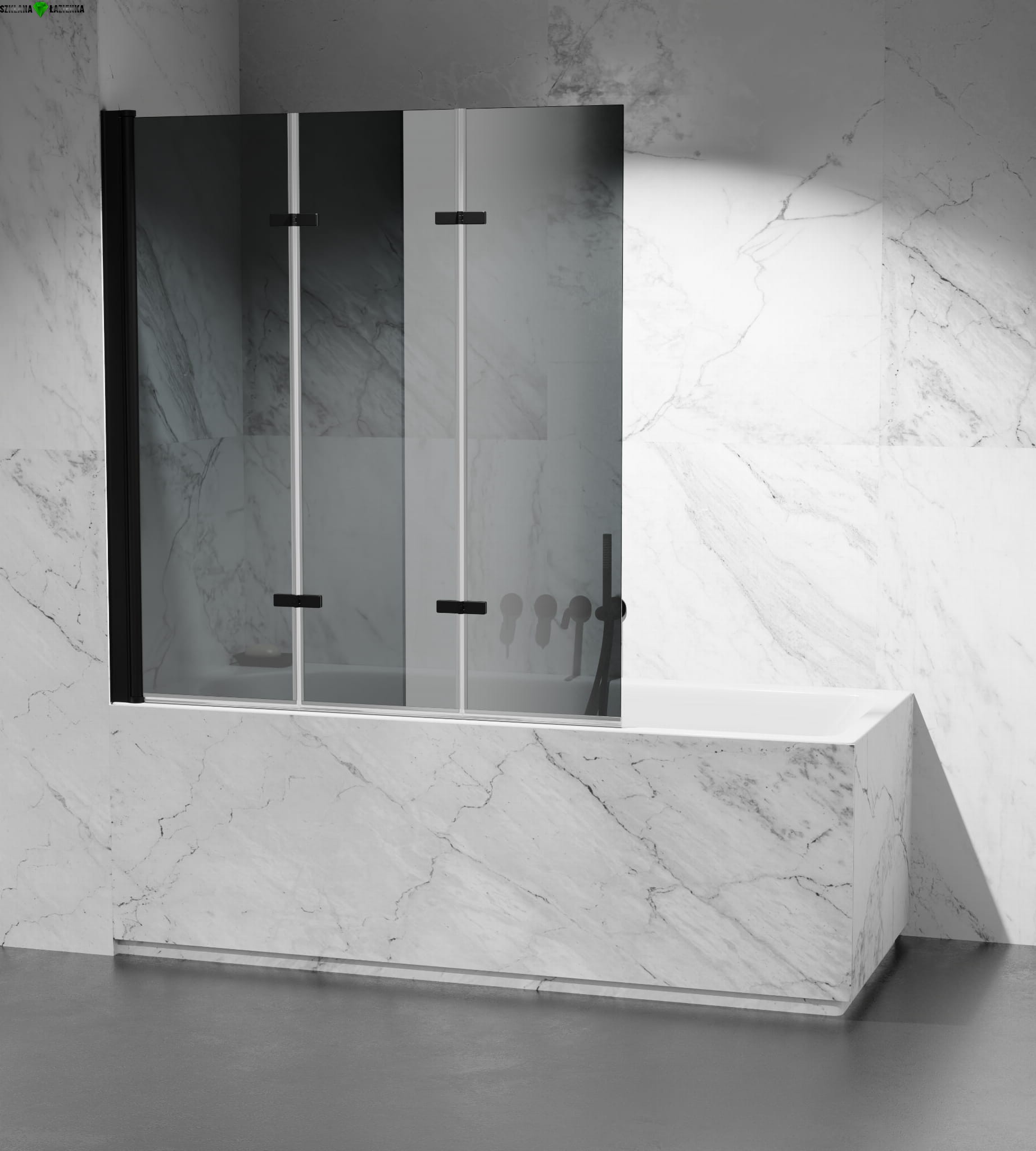 Szklany parawan z przeznaczeniem montażu na wannie z listwą ścienną i rolką obrotową. Wieloelementowa, składana konstrukcja, pozwala na szybkie złożenie parawanu po zakończonej kąpieli. Odzyskujemy dzięki temu przestrzeń na swobodne poruszanie się po łazience. Jest to niezwykle ważne szczególnie przy małych powierzchniach.