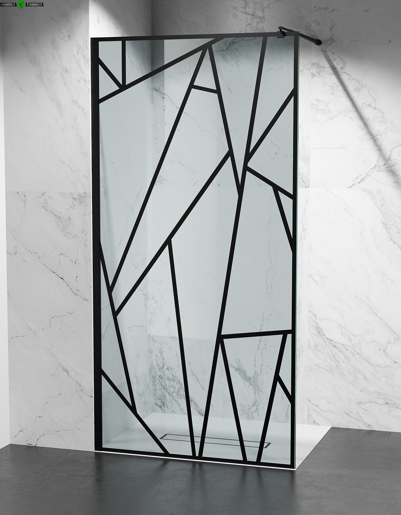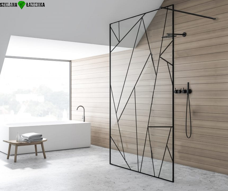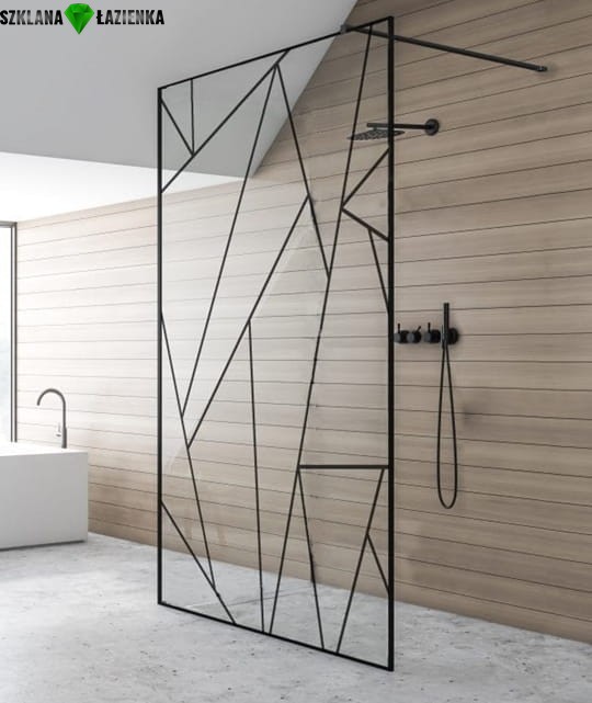 Ścianka Prysznicowa Walk-In TRANSPARENTNA CZARNE SZPROSY
