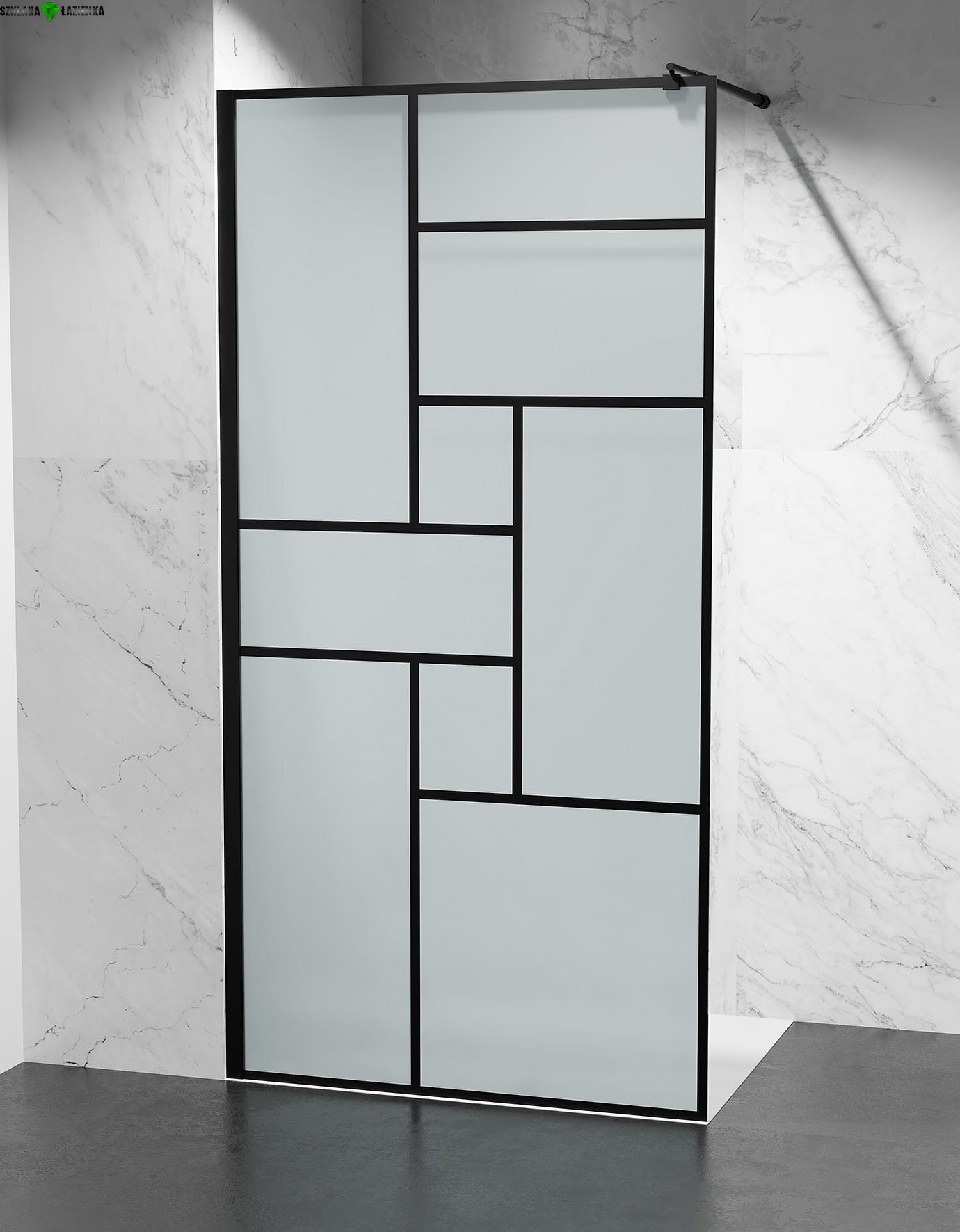 Ścianka Prysznicowa Walk-In MROŻONA CZARNE SZPROSY CUBIC