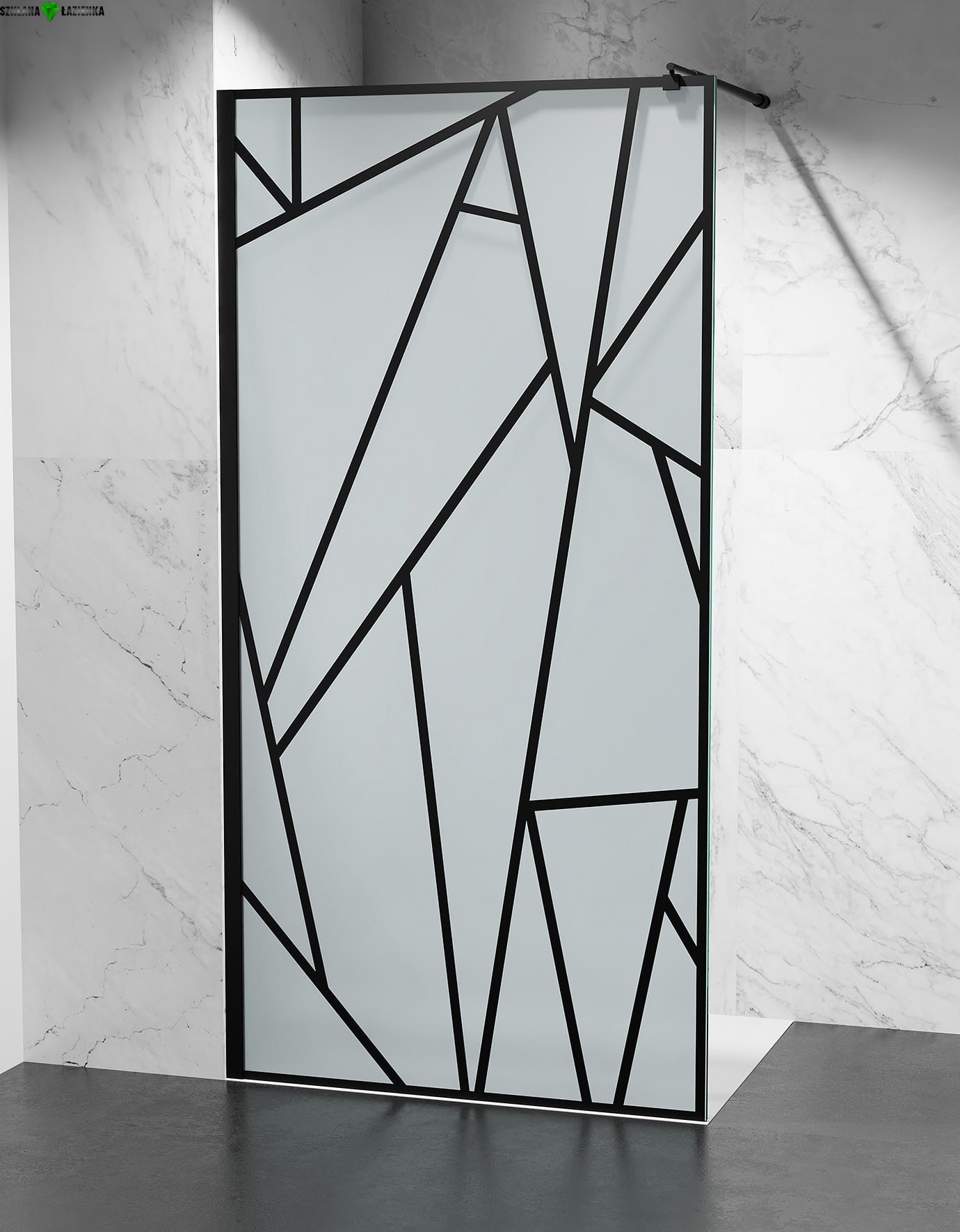 Ścianka Prysznicowa Walk-In MROŻONA CZARNE SZPROSY