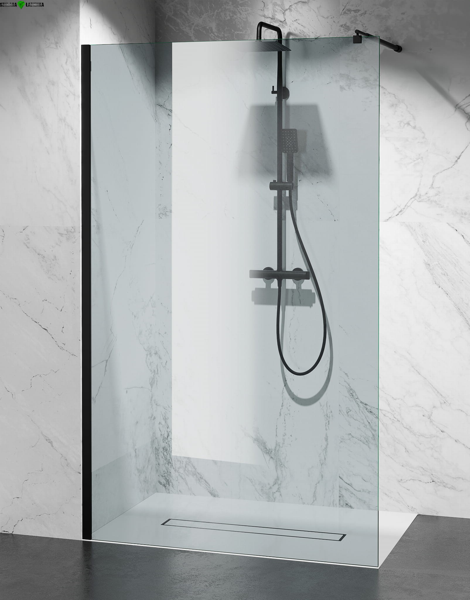 Ścianka Prysznicowa Walk-In T9 Czarne Okucia