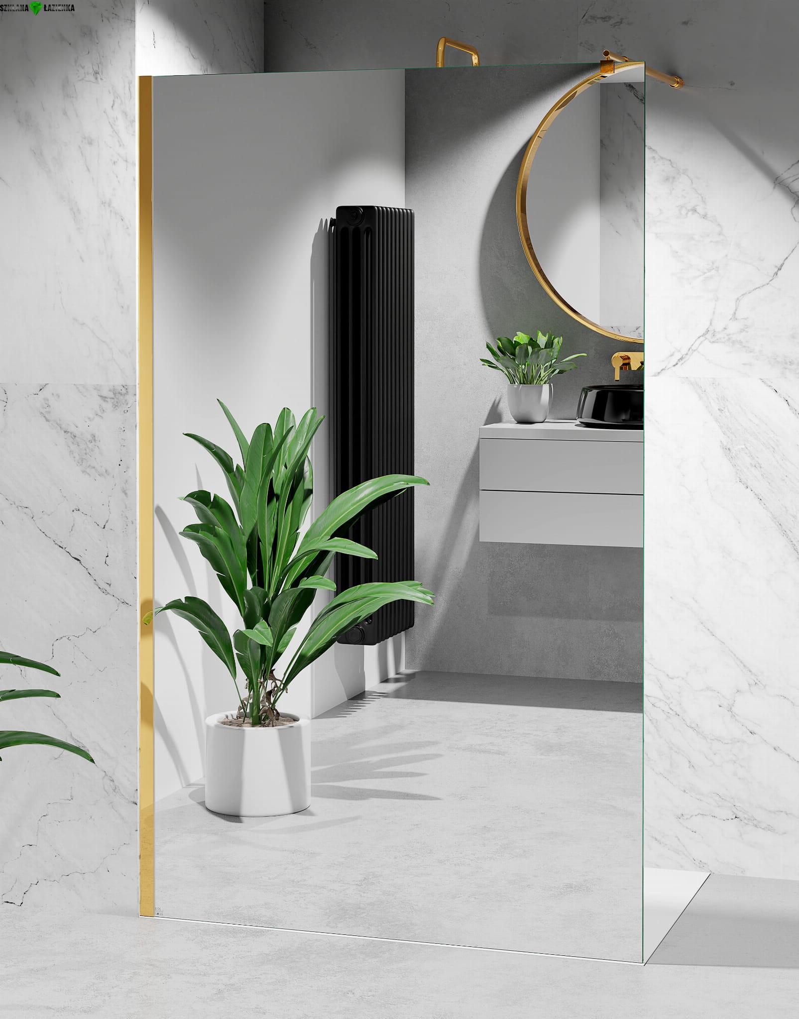 Ścianka prysznicowa Walk-In W9MIRA LUSTRO Złoty Połysk