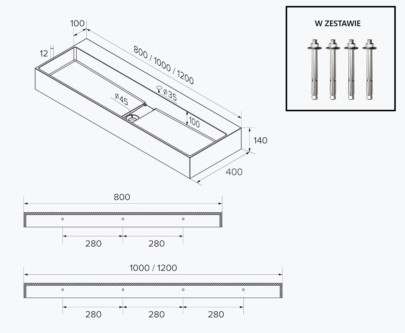 - Wymiary: 40 x 100 x 14 cm