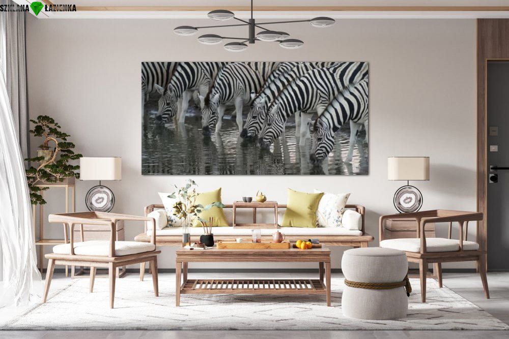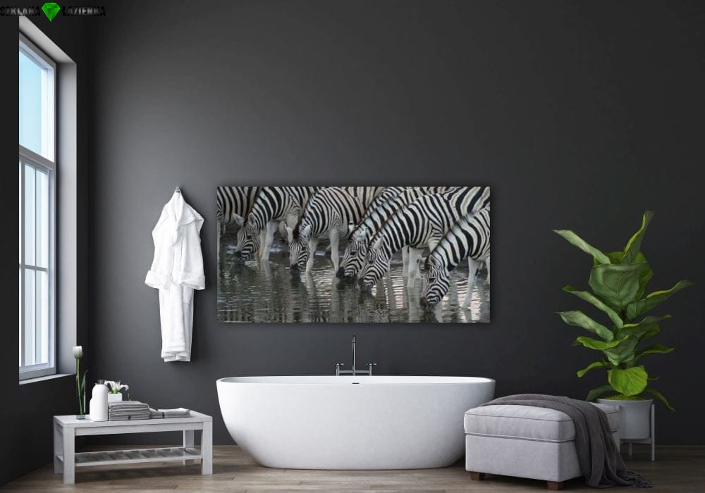 obraz na szkle, panel szklany Zebra wodopój