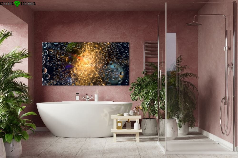 Obraz szklany wykonany na bezpiecznym szkle hartowanym stanowić może nowoczesne i eleganckie wypełnienie każdego wnętrza. Idealnie znajdują zastosowanie do: kuchni, jadalni, salonu, łazienki czy sypialni. Jedynym ograniczeniem jest tylko twoja wyobraźnia.