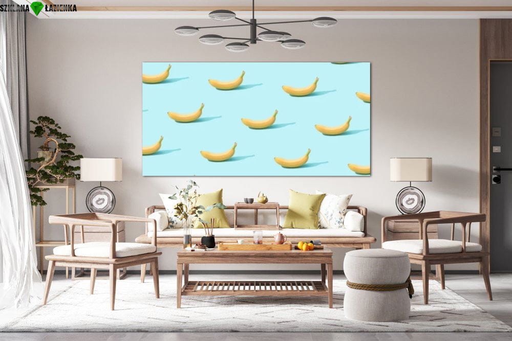 obraz na szkle Banan kolaż błękit
