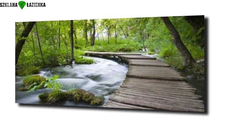obraz na szkle Drewniany most w lesie