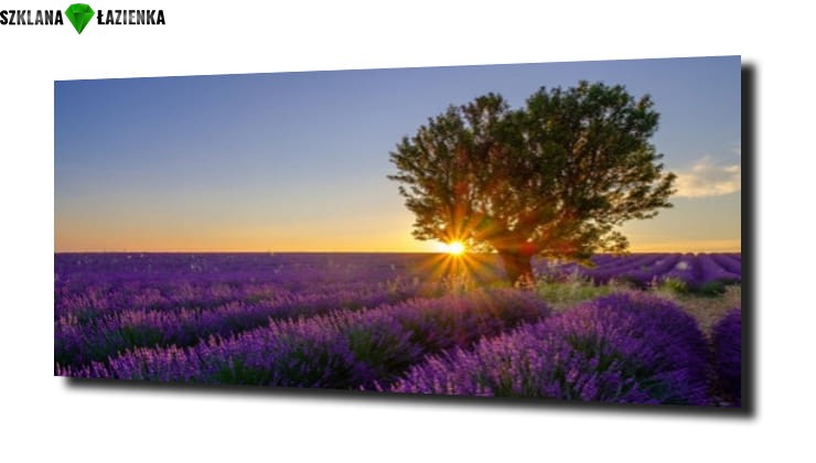 obraz na szkle Drzewo na polu lawendy