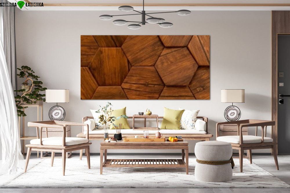 obraz na szkle Heksagon drewno ciemne